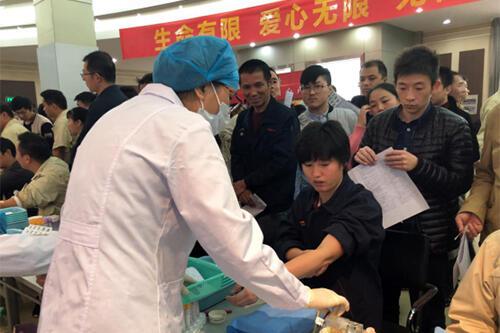 11月15日,室外寒风萧瑟,室内却是暖意融融。盛虹集团一年一度的无偿献血活动在党员活动中心成功举行,来自化纤、印染、热电等各分公司300余名职工积极参与,总累计献血达74800毫升。