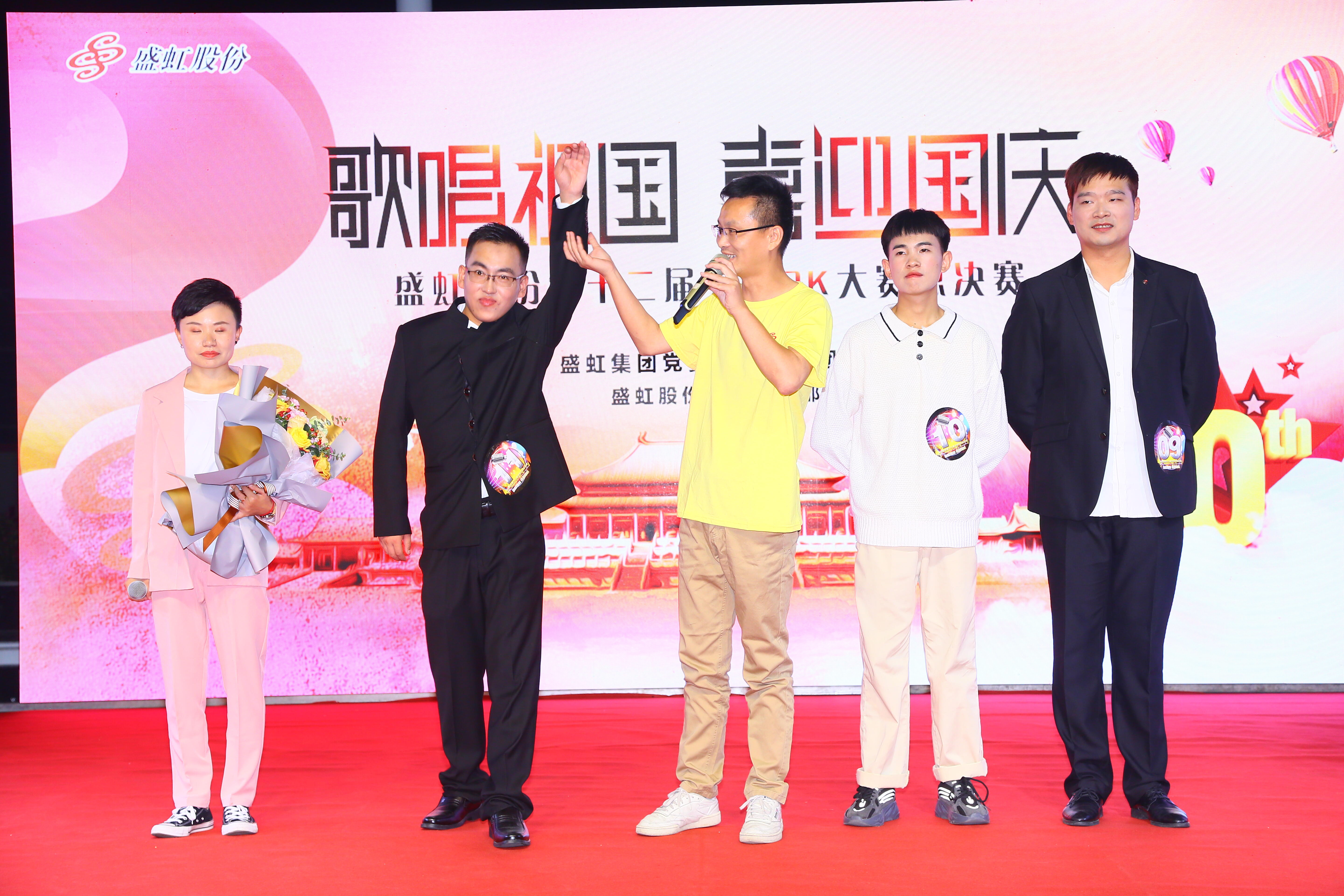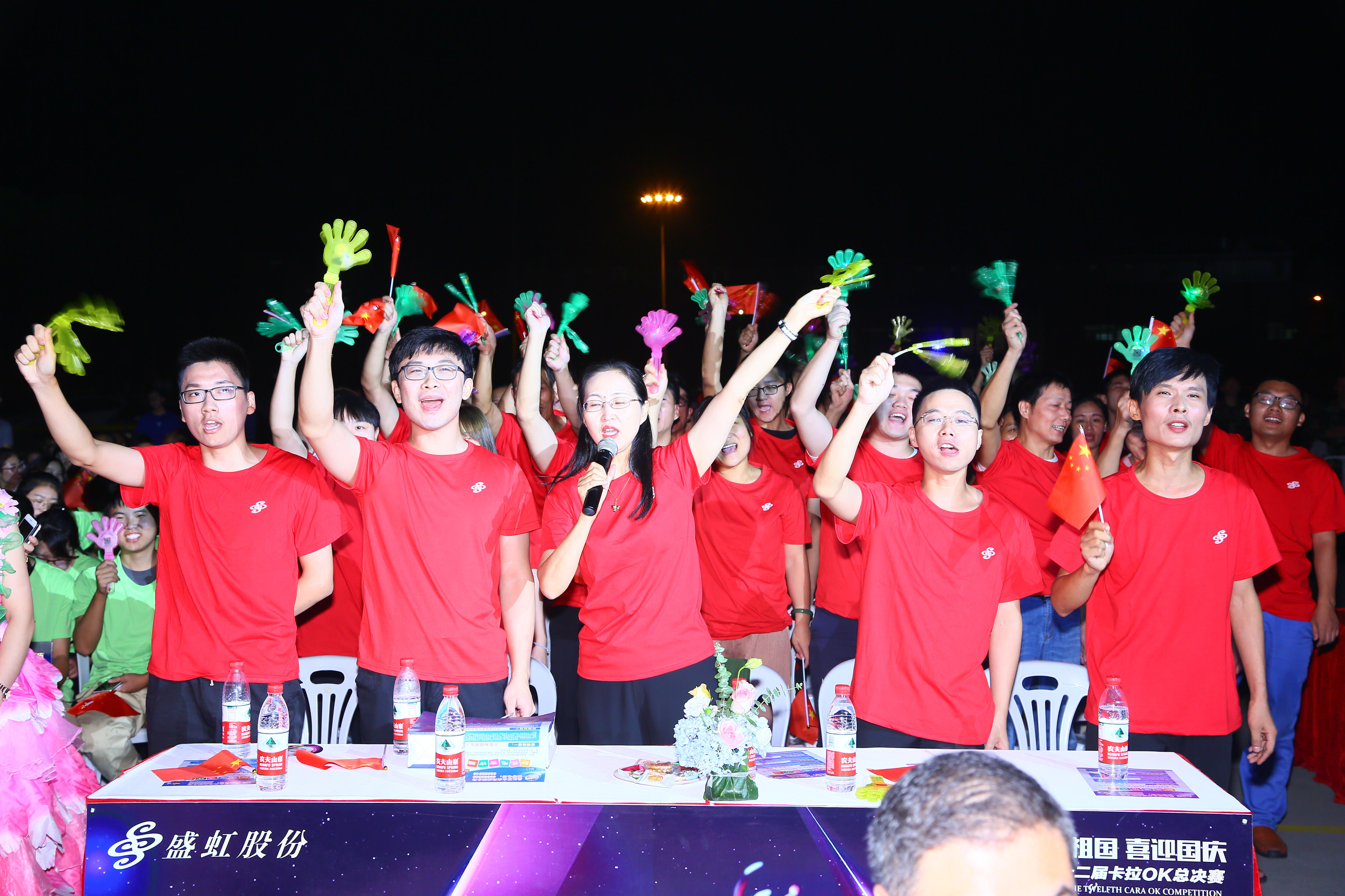 “我和我的祖国,一刻也不能分割。无论我走到哪里,都流出一首赞歌。我歌唱每一座高山,我歌唱每一条河……”当天晚上,盛虹集团红歌大赛在《我和我的祖国》中拉开帷幕。经过两个月的时间,从近千名选手中遴选出的17位选手分为四大战队进行“PK”,同唱祖国赞歌。《歌唱祖国》、《映山红》、《龙的传人》、《我的中国心》……一首首脍炙人口的歌曲,传递着盛虹人对祖国的祝福。员工们手握红旗、胸口贴上心形贴,在激昂的歌声中,晚会现场俨然一片红色的欢乐海洋。