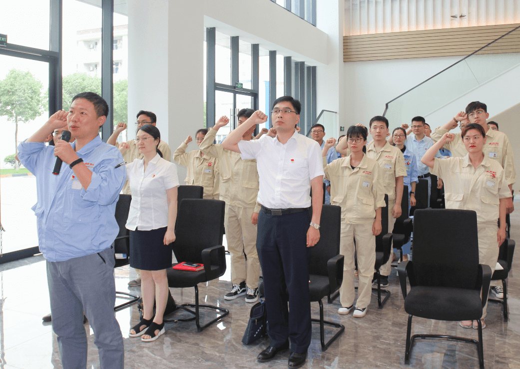 在鲜红的党旗下,全体党员同志们高举右拳,重温入党誓词:“我志愿加入中国共产党,拥护党的纲领,遵守党的章程……”铮铮誓言,铿锵承诺,表达了对党高度崇敬和忠诚,为党的事业奋斗终身的决心和愿望。庄严而肃穆的仪式,引导全体党员干部牢记党的宗旨,履行党员义务,坚定党员信念,激发为集团发展主动担当作为、争当先锋模范的决心。