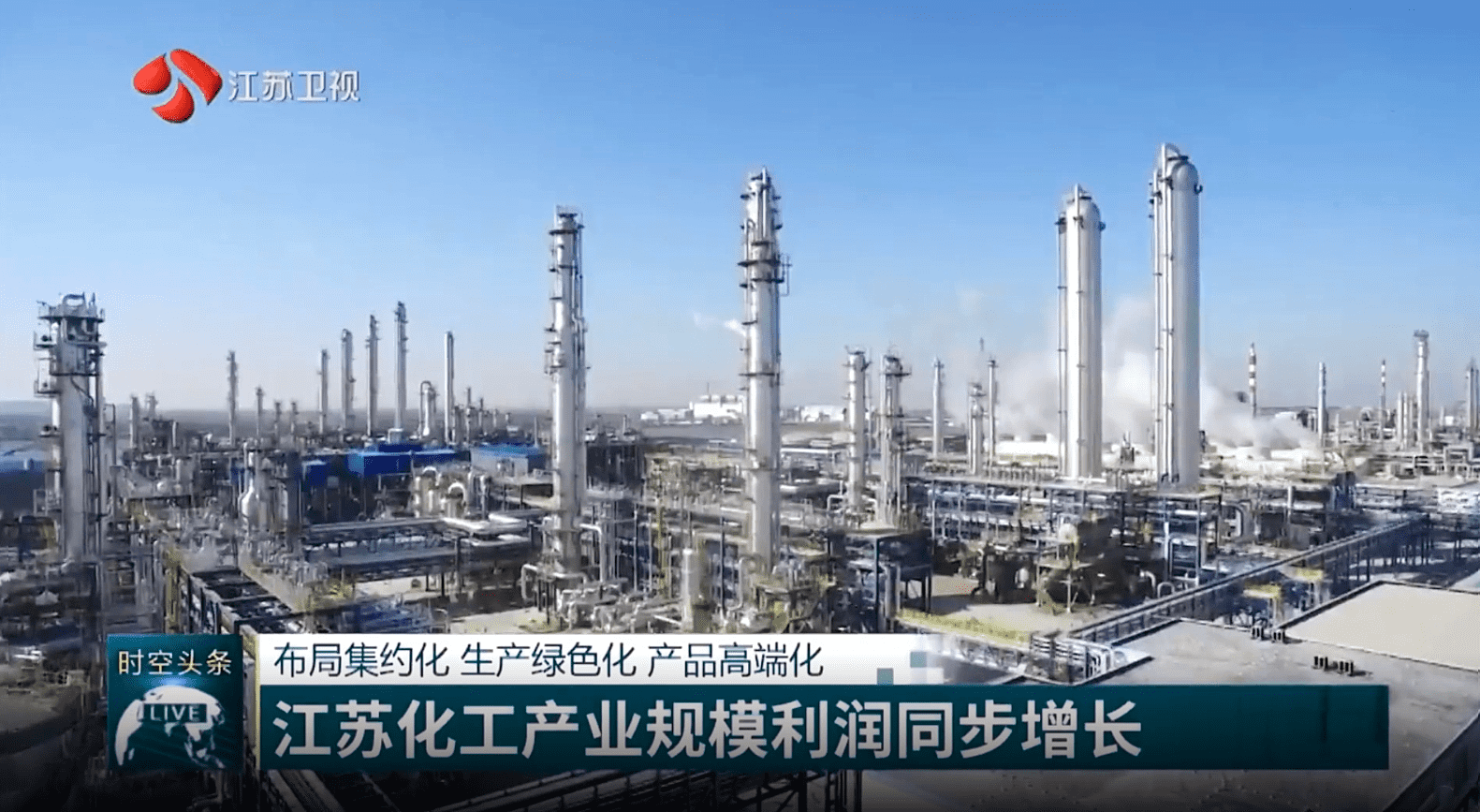 10月10日,《江苏新时空》头条新闻点赞,斯尔邦石化二氧化碳制新能源材料产业链项目布局集约化、生产绿色化、产品高端化,对于我国二氧化碳大规模资源化利用,减少温室气体排放具有重要意义,是打造绿色低碳产业的标杆项目。