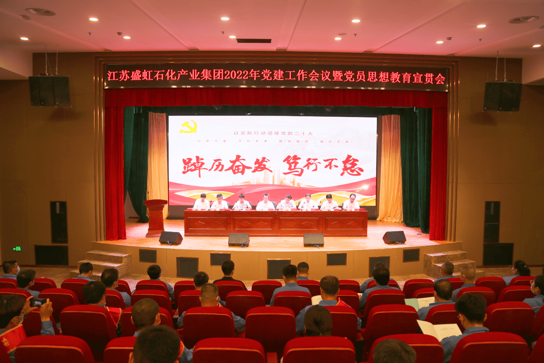 会议在嘹亮的国歌声中拉开帷幕。卢忠宝代表连云港徐圩新区管委会党工委发表致辞,他向前来参会的市委组织部领导以及与会党员代表表示了衷心感谢,并向全体党员致以节日的诚挚问候。随后,盛虹石化产业集团党委副书记王凯代表集团党委作题为《踔厉奋发 笃行不怠 以实际行动迎接党的二十大胜利召开》的工作报告,报告全面回顾总结了过去一年集团党委带领各级党组织和全体党员围绕安全生产、项目建设、科技创新和企业文化建设等中心大局所取得的各项成绩,并对下一时期党建重点工作计划进行了精心部署。