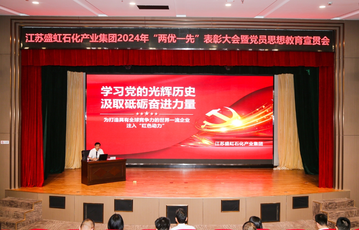 近日,盛虹石化产业集团召开2024年“两优一先”表彰大会暨党员思想教育宣贯会。中共连云港市委社会工作部副部长臧永明、徐圩新区四级调研员刘学勤、徐圩新区管委会政法委书记、两新工委书记徐聆溪、盛虹石化产业集团党委书记刘鹏及集团所属各党组织书记、委员、党员代表共计150人出席了会议。