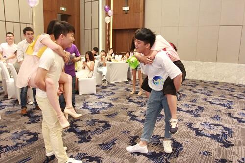 下午4点半,一场大雨降临,驱散了南方小镇夏日的炎热,却没有驱散盛虹职工的热情。报名参加联谊活动的男女嘉宾们纷纷冒雨前来赴约,同样没有被大雨浇灭热情的还有公司的各位领导。为了更好的融入到广大的职工中去,关心了解他们的生活,公司领导纷纷扮演起了主持人和工作人员的角色。联谊活动在下午5点准时开始,轻快的音乐声中,男女嘉宾们面对面而坐,进入第一个游戏环节:《初次见面,请多关照》,主持人宣布这个活动的主旨在于促进现场嘉宾的认识,大家可以向身边的同事索要手机号、微信号等,方便活动结束后的交流互动。在经过一轮的换座“约会”之后,男女嘉宾都对彼此有了初步的了解,大家也开始慢慢的放松,没有了一开始的拘束。