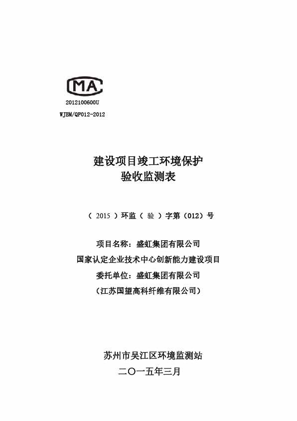 Sheng Hong group, the state recognized enterprise technology innovation capacity building projects