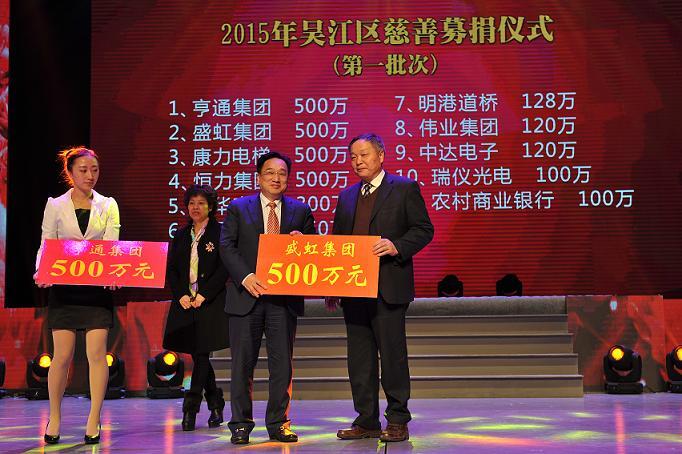 On February 10, Wujiang people's theater surging an upsurge of charitable donations, 2015 Wujiang New Year celebration will in this grand curtain, Sheng Hong group with major companies and the community of caring people love build-up, with actual donor played the first year for a prelude to love.