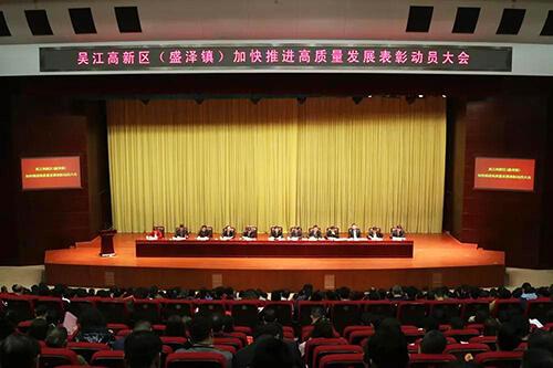 3月28日,吴江高新区(盛泽镇)召开全镇加快推进高质量发展表彰动员大会,会议安排部署了年度经济工作任务,表彰了一大批2018年度经济工作先进单位。吴江区委常委、盛泽镇党委书记、中国东方丝绸市场党工委书记王益冰,吴江高新区管委会主任、盛泽镇党委副书记、镇长吕伟峰等领导,盛虹集团副董事长唐金奎等企业代表出席会议。