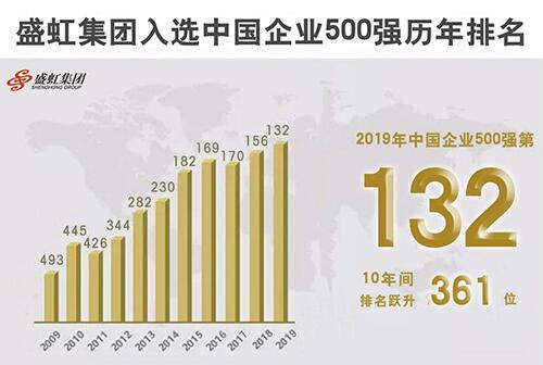 9月1日,由中国企业联合会、中国企业家协会主办的“2019中国500强企业高峰论坛”在山东济南召开。会上,备受各界关注的2019中国企业500强榜单正式出炉,盛虹集团排名第132位,较去年上升24位,自2009年首次上榜以来,排名稳步攀升!