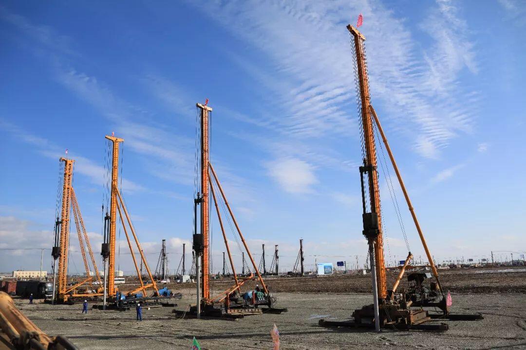 在盛虹炼化减压装置施工现场,大型吊机长臂挥舞,各种工程车辆、运输车辆往来穿梭,一座座桩机汽锤上下翻飞,整个现场呈现出繁忙有序的景象。据工程部安装工程师张建国介绍,为保证如期完工,公司全体参建人员扎根一线、精心组织、科学施工,“我们采取了各项措施保障施工进度,如增加场内施工人员和机械,开展2019年桩基施工劳动竞赛,组织各施工单位按照确定的夜间施工方案开展夜间施工,增加道路施工山皮石供应来源及运输渠道等,有力地推动了工作的顺利开展。”