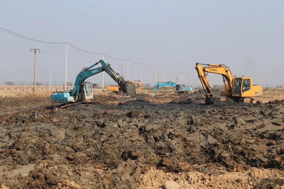 目前已有4家施工单位进场,正在进行回填土、场地平整。
