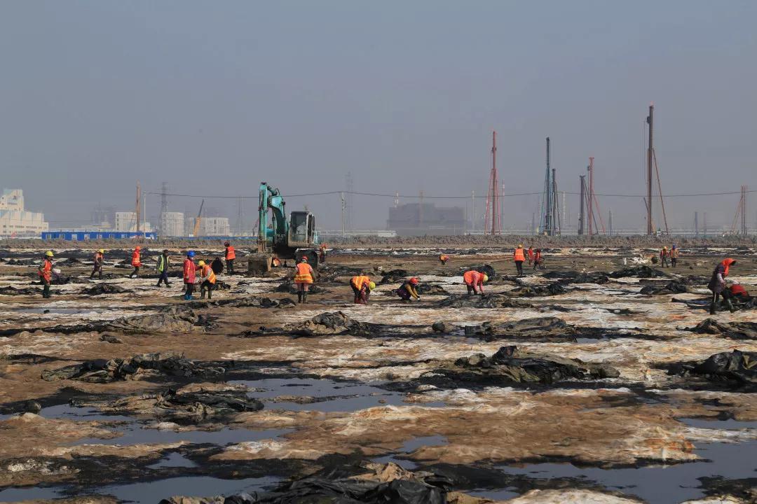 化工四区开始揭膜、场地清理。