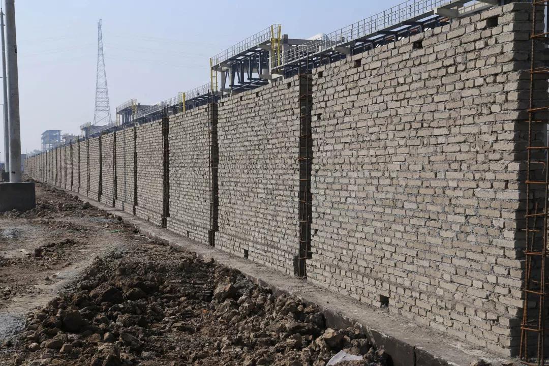 厂区围墙砌筑已完成总量的64%。