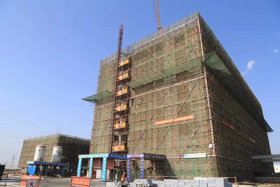 综合办公楼及食堂结构已封顶,正在进行墙体砌筑。
