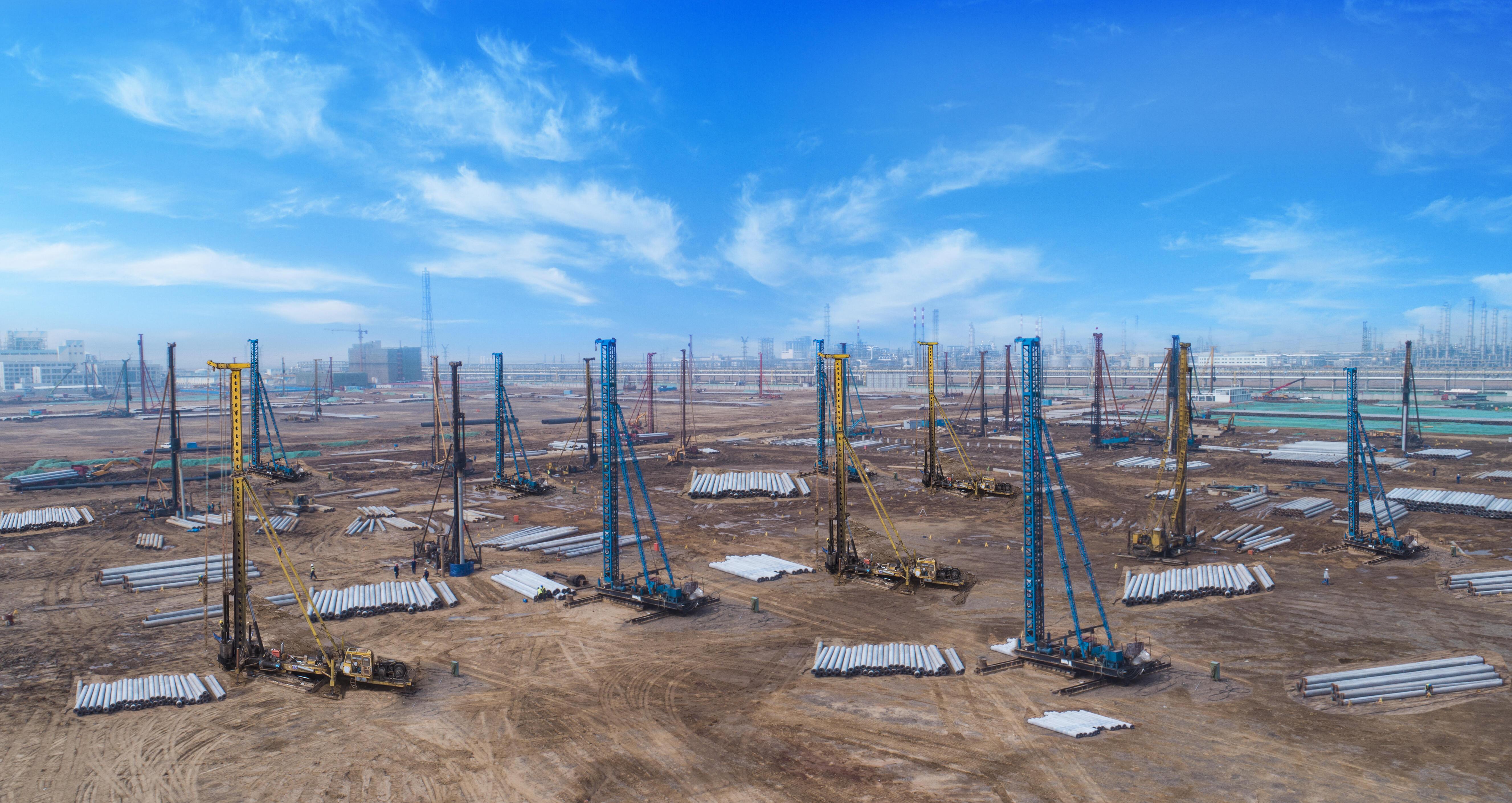 “桩基施工百日劳动竞赛”启动以来,工程按下“快进键”,目前现场有近200台桩机同步施工,已累计完成桩基施工260万米。