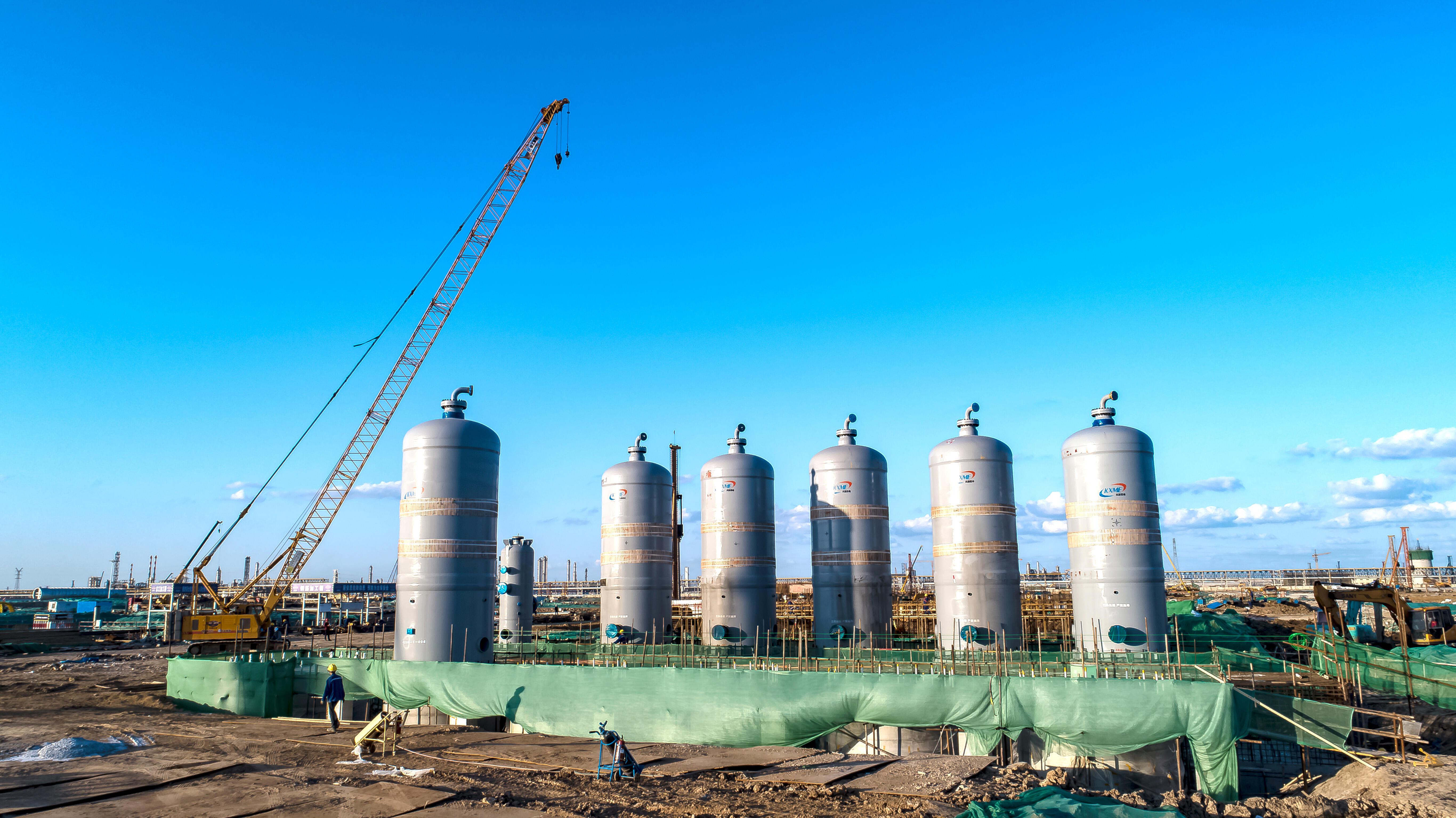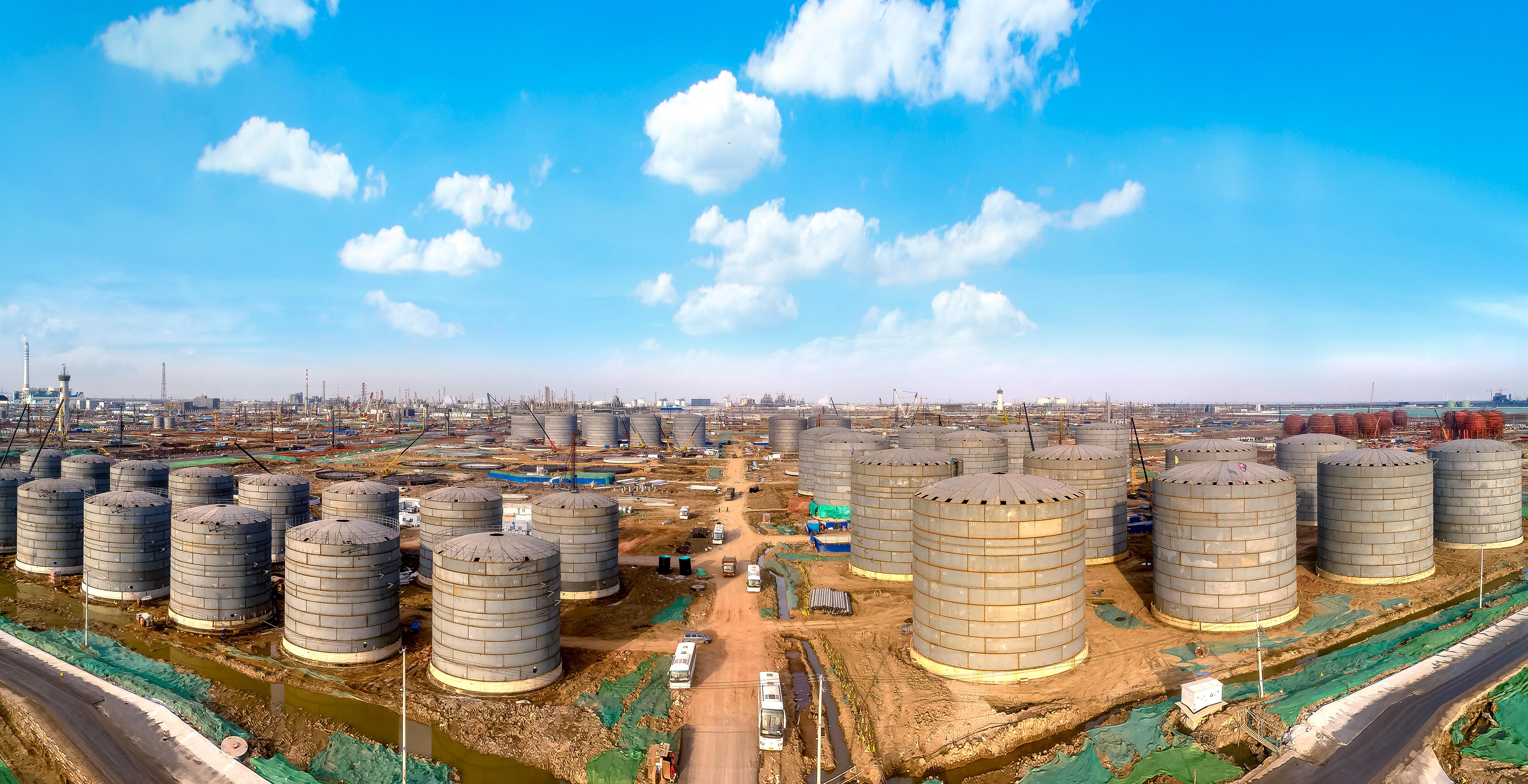 厂内及厂外罐区100余台储罐完成主体结构施工,罐区参建人员已增加至3200余人。