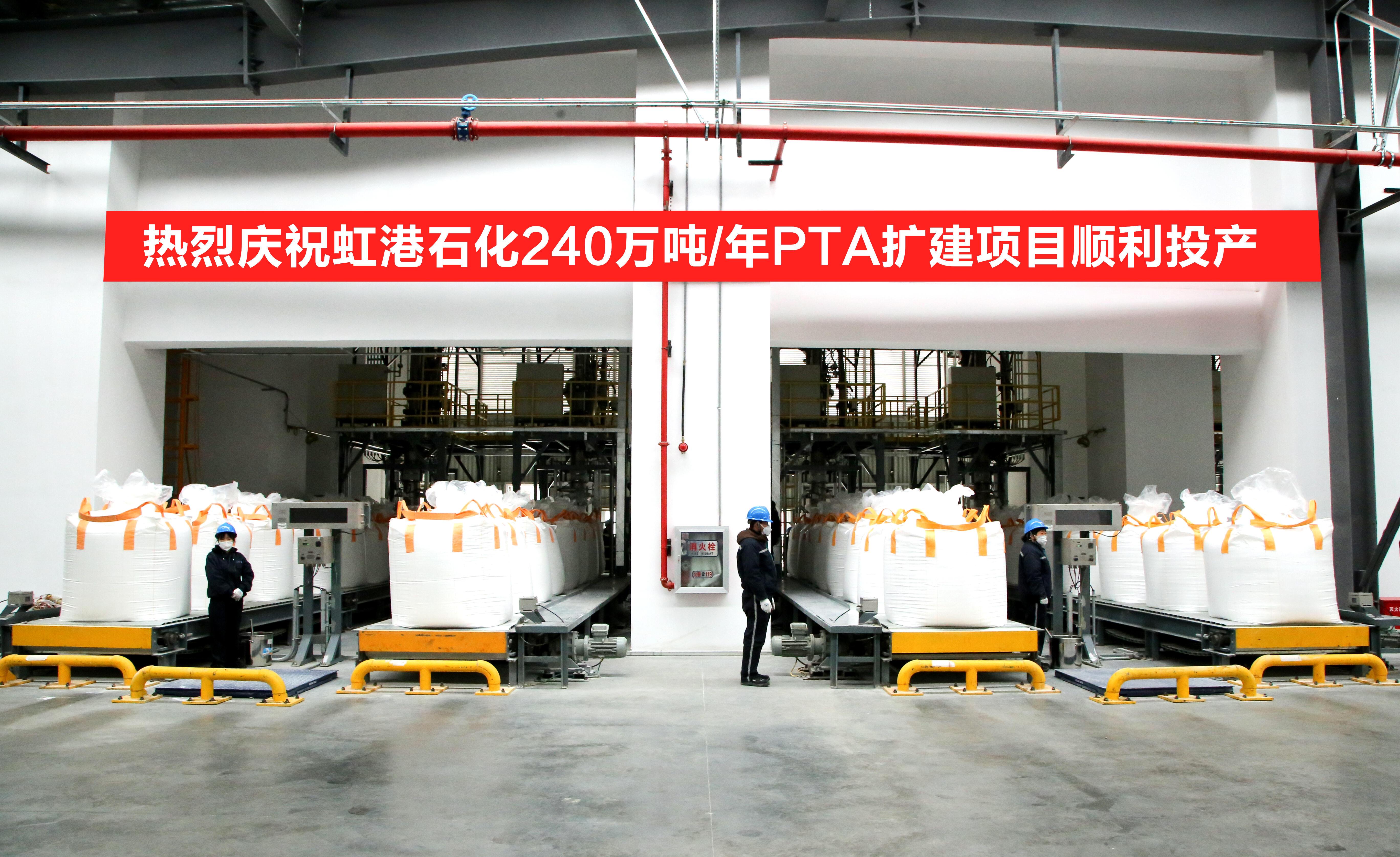 2021年3月3日,虹港石化二期240万吨/年PTA扩建项目产出优质精对苯二甲酸(PTA)产品,项目开车一次成功!
