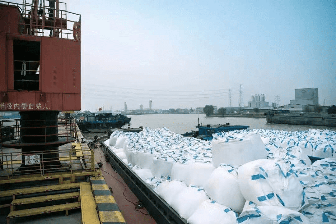 在洒水过后的工地道路上,我的身边偶有卡车驶过,一车车的化工原料将被装船,目的地就是盛泽镇的盛虹化纤工厂。