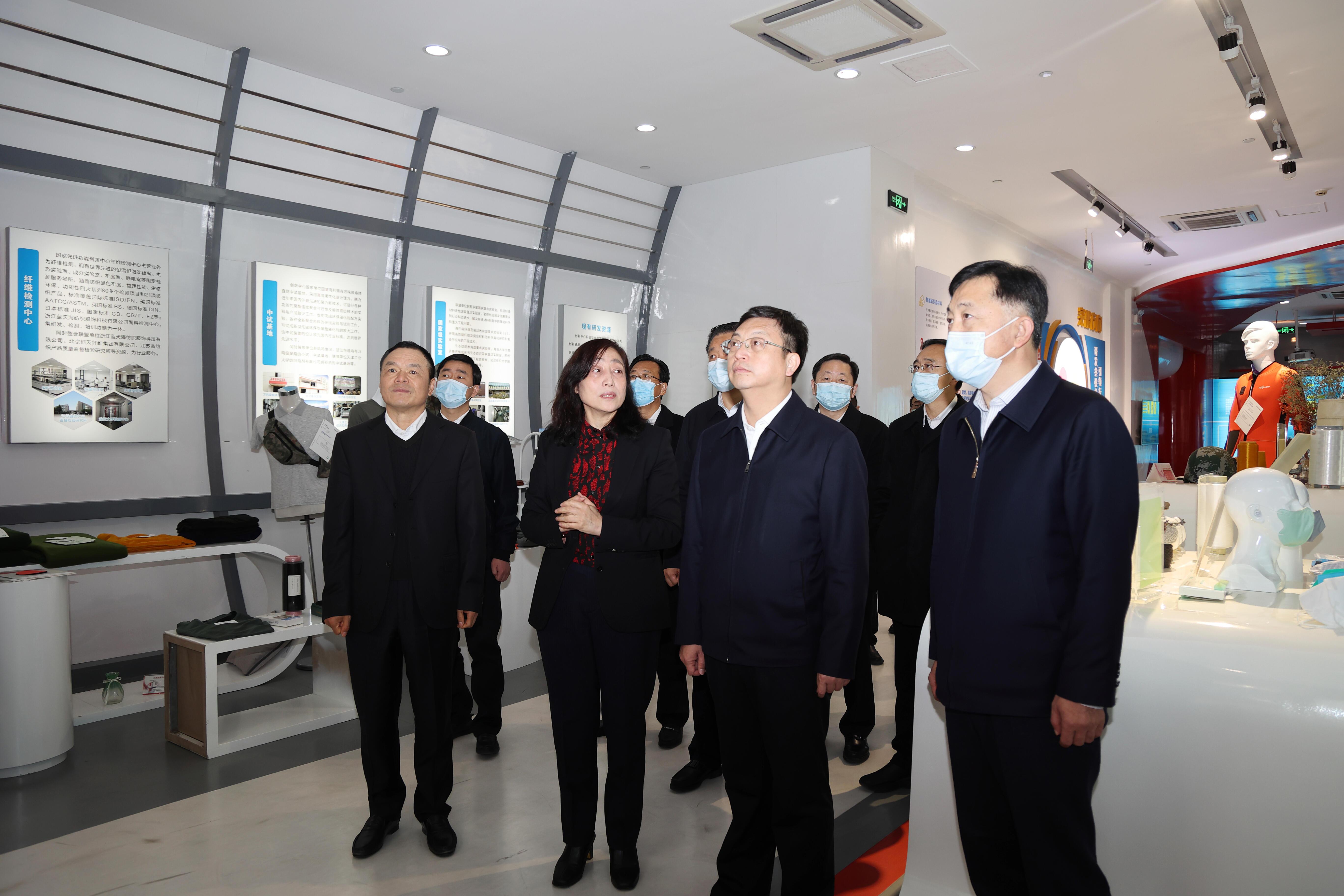 曹路宝书记一行走进国家先进功能纤维创新中心,察看特色产品展示,详细了解技术优势、研发项目和科研成果转化应用等情况。曹路宝书记对盛虹以创新驱动高质量发展表示高度认可。他指出,盛虹集团作为世界500强和苏州民营企业的排头兵,加强与高水平研发平台合作,推动自有研发机构实现内部化向外部化转变、私有化向公共化转变,加大了市场化引导力度,提高了成果转化效率,做法值得肯定。勉励盛虹紧盯国内外前沿技术,在新材料领域深耕细作,坚持以市场为导向,加强与高校、科研院所的紧密合作,不断提高创新能力。