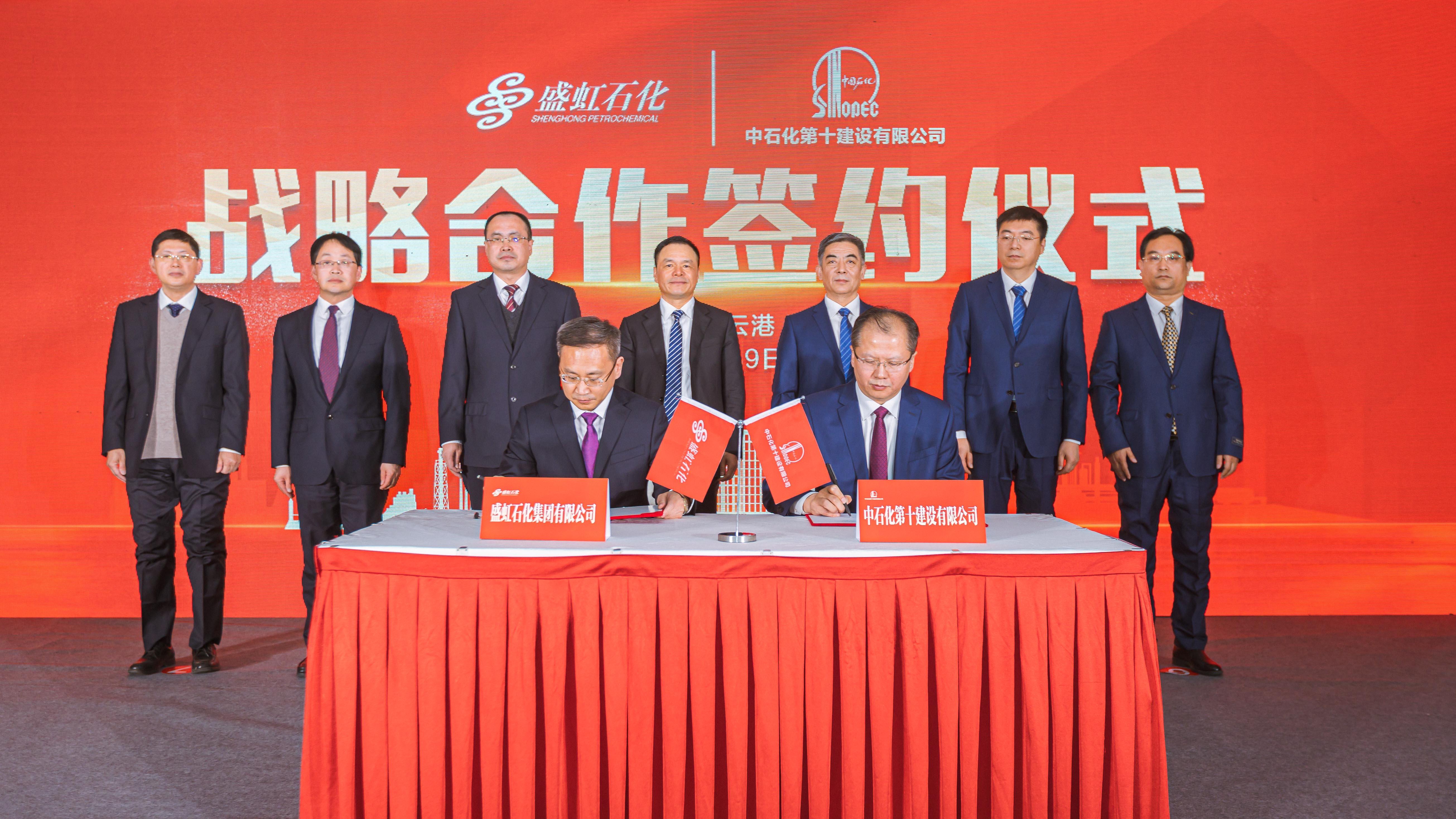 2月9日,盛虹石化产业集团与中石化第十建设有限公司(简称“中石化十公司”)战略合作签约仪式在连云港隆重举行。中石化十公司执行董事、党委书记吴忠宪、盛虹控股集团董事长缪汉根出席仪式并发表致辞,中石化十公司总经理王毅、盛虹石化产业集团总裁兼斯尔邦石化总经理白玮代表双方签署战略合作协议,盛虹石化产业集团副总裁兼盛虹炼化总经理于会泳主持签约仪式。