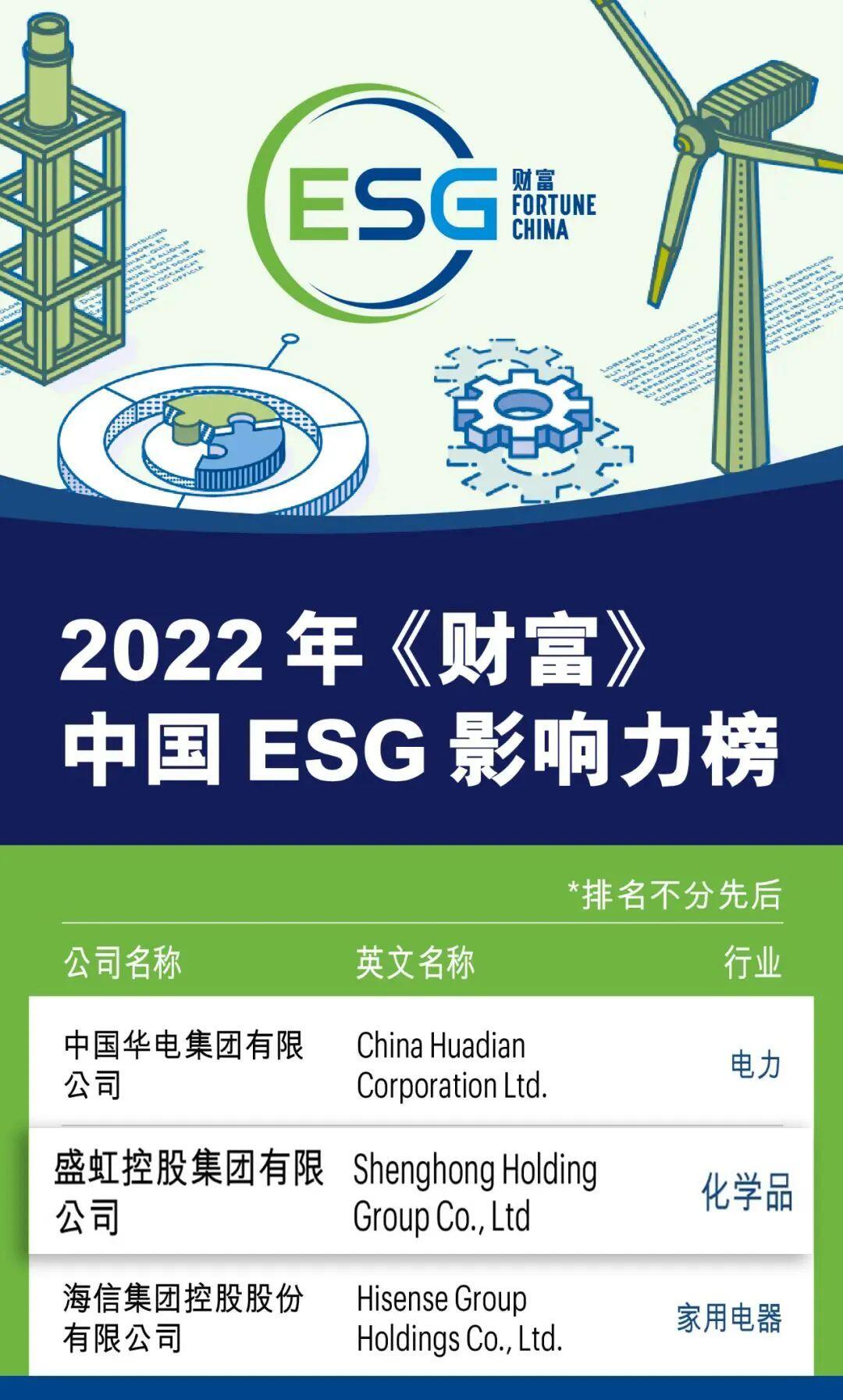 8月23日,2022年《财富》中国ESG影响力榜揭晓,盛虹控股集团凭借在环境、社会责任和公司治理方面的经验和贡献成功入选。该榜是《财富》编制的首份中国ESG榜单,仅有40家企业上榜。