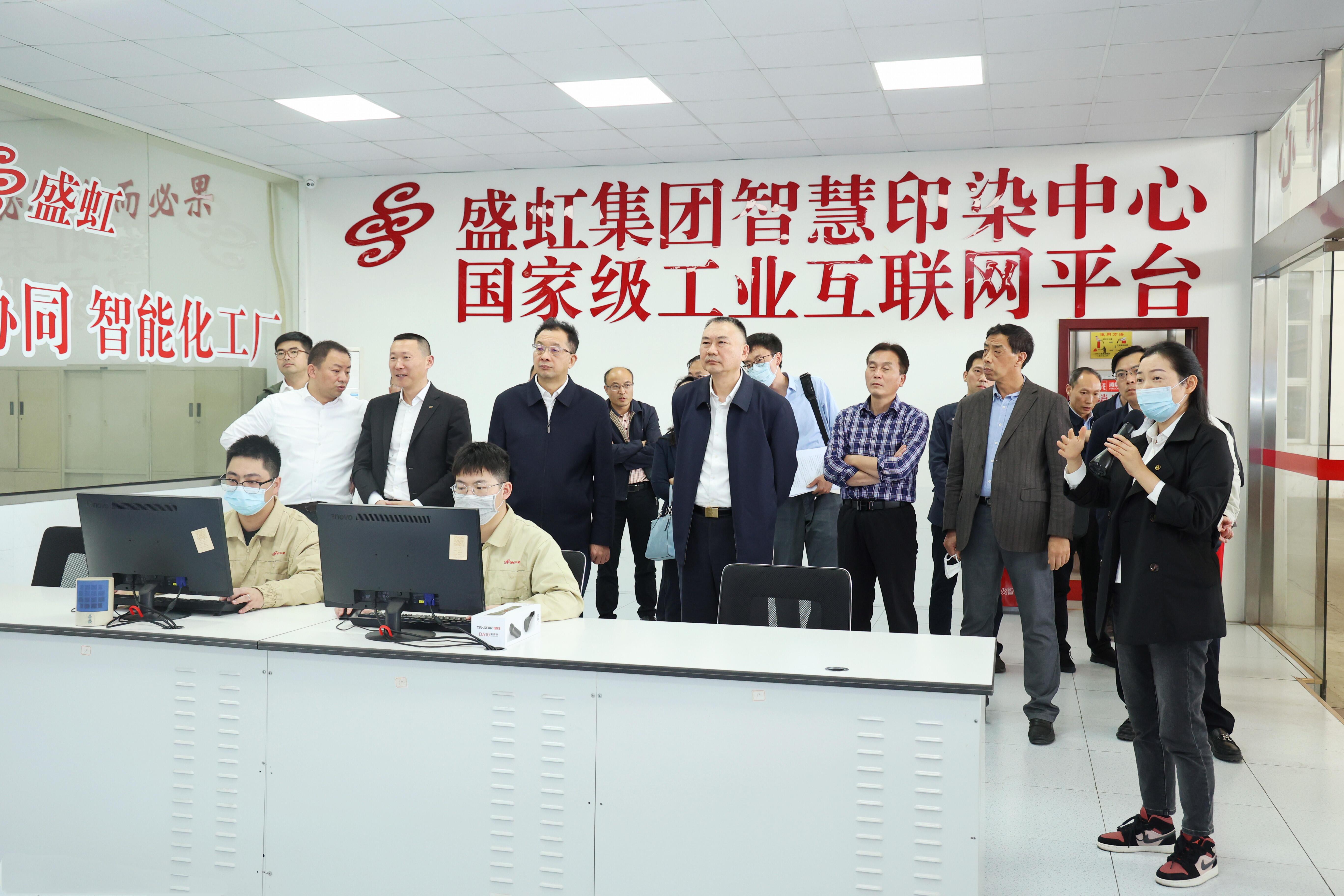 何亚琼先后调研了国家先进功能纤维创新中心、国望高科再生纤维生产车间和盛虹新民印染厂,对创新中心建设,绿色纤维制品可信平台、盛虹智慧印染工业互联网平台运行情况进行详细了解。
