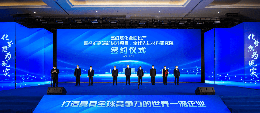 12月28日,盛虹炼化全面投产暨盛虹高端新材料项目,全球先进材料研究院签约仪式在连云港徐圩新区隆重举行,这标志着国内单流程规模最大的炼化一体化项目全流程贯通,成功实现全面投产。
