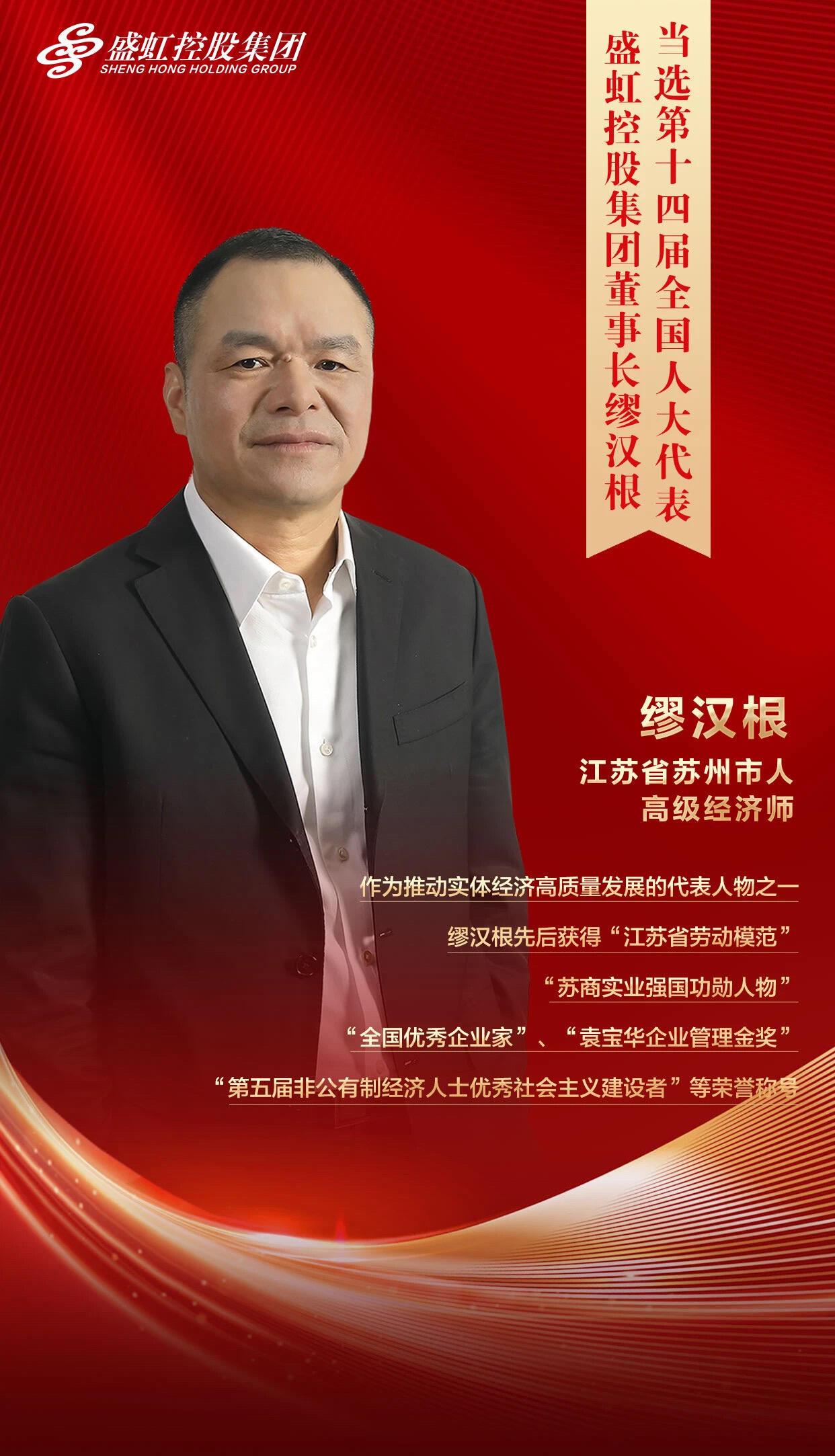 江苏省第十四届人民代表大会第一次会议于2023年1月19日,选举产生江苏省出席第十四届全国人民代表大会代表共144名。盛虹控股集团党委书记、董事长缪汉根光荣当选第十四届全国人大代表。