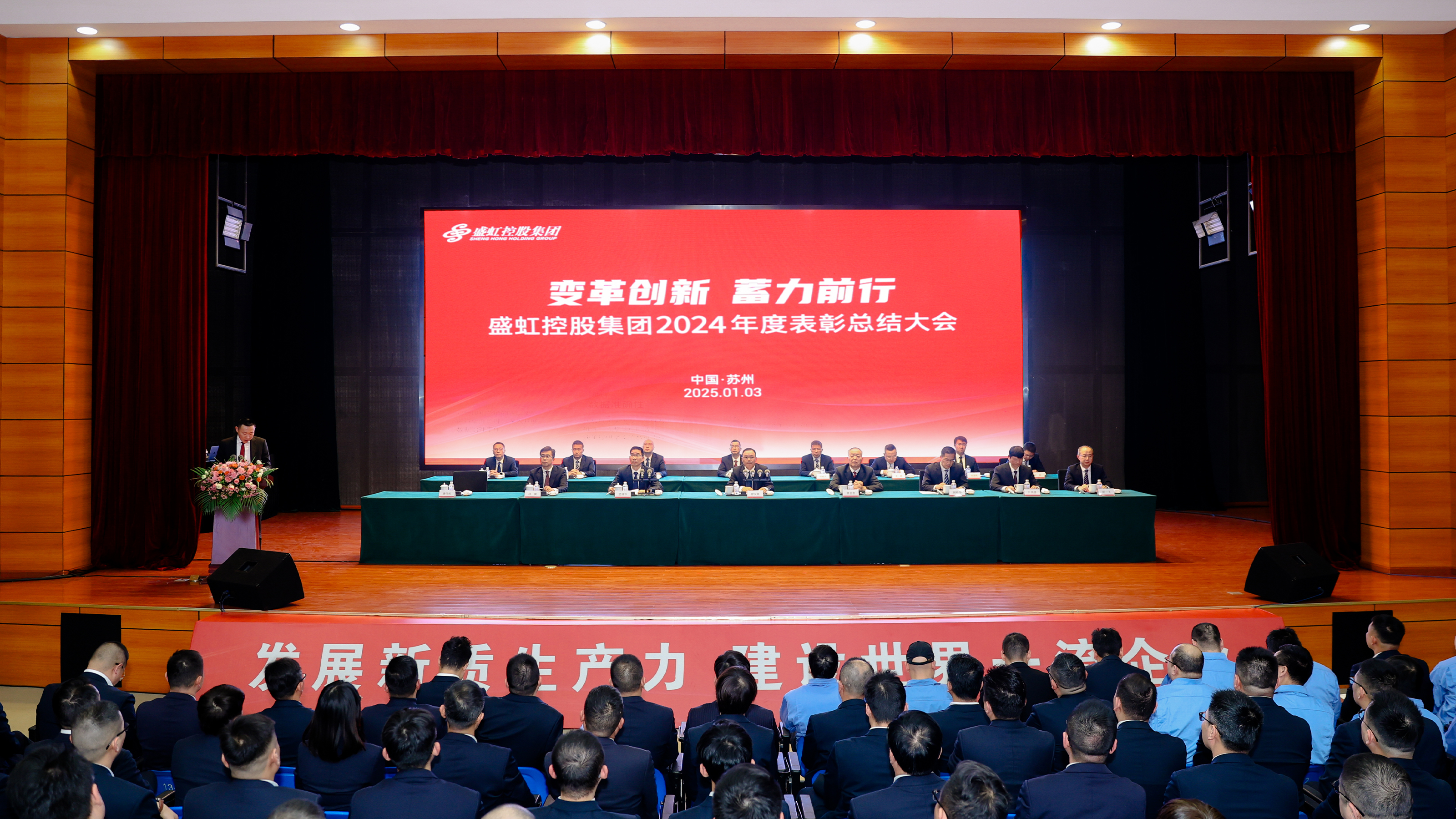 1月3日下午,盛虹控股集团召开2024年度表彰总结大会,回顾总结2024年的成绩,安排部署2025年的工作。盛虹控股集团党委书记、董事长、总裁缪汉根,副董事长唐金奎,副总裁孟锋华、顾栋华,集团及苏州区域各业务板块管理人员参加会议。