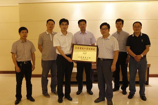 7月2日,苏州市总工会副主席朱正荣来到公司,代表省总工会向集团授予了“江苏省五一劳动奖状”奖牌。吴江区总工会主席严品华、集团工会主席高苏健等出席了授牌仪式。